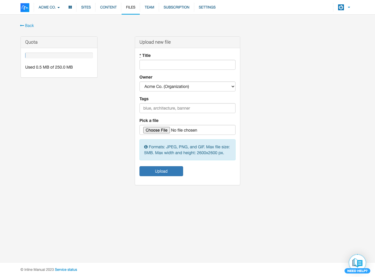 You can upload images to the Inline Manual Portal with Inline Manual Files. Then, you can use them in your Steps or Articles. Whenever you need to replace the image, you can do it just within the Inline Manual Portal without the need to update every single Topic that contains this image.