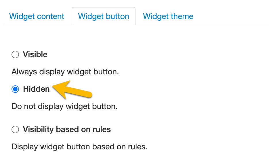 - Go to the Widget button tab and choose Hidden.