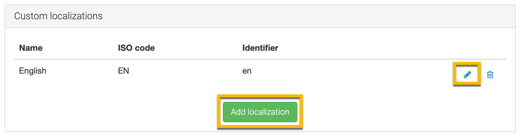- Click Add localization or the Edit button.