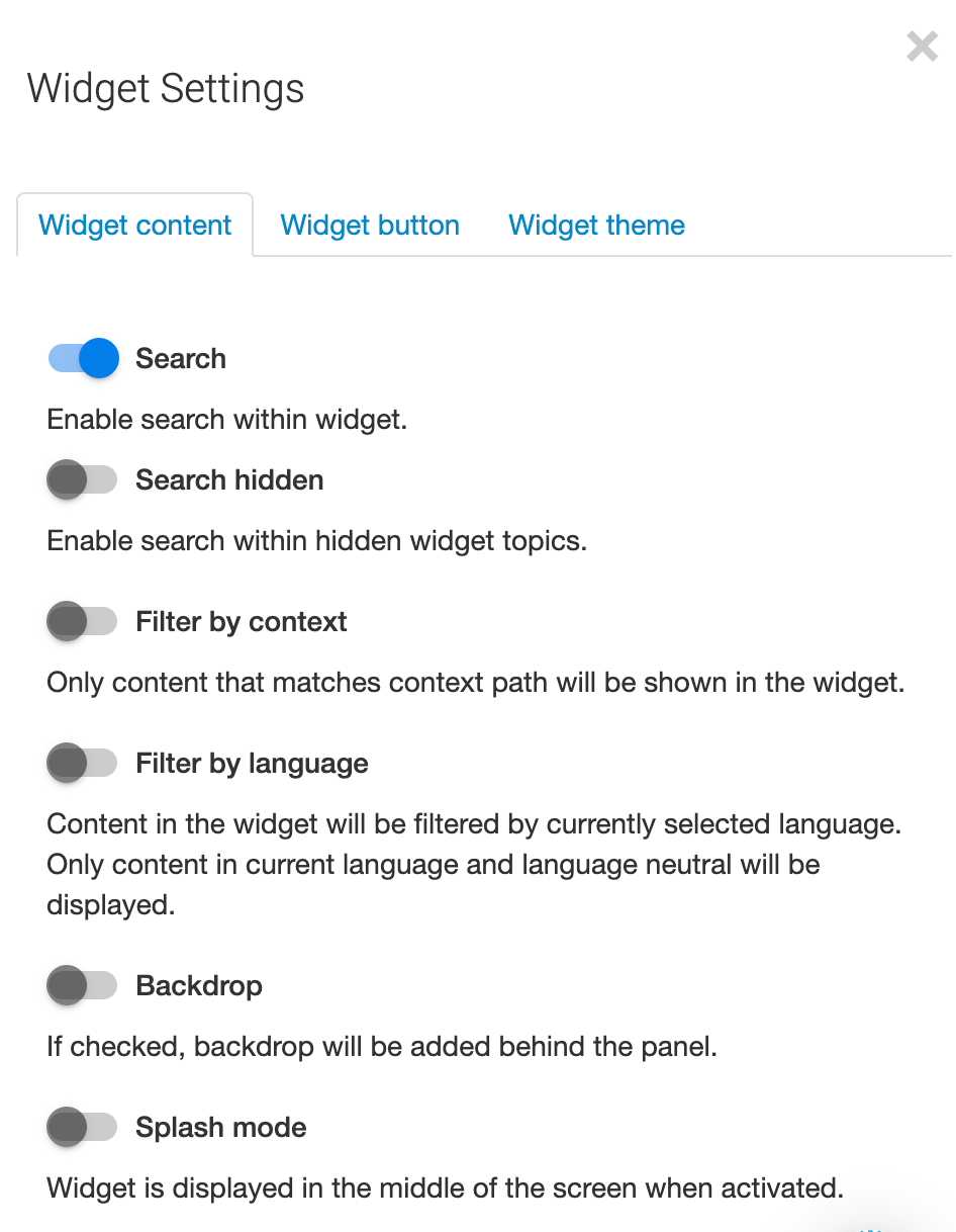 Filter by context - if checked, only topics that match the context path will be shown within the widget. This allows you to show only relevant content to your users.